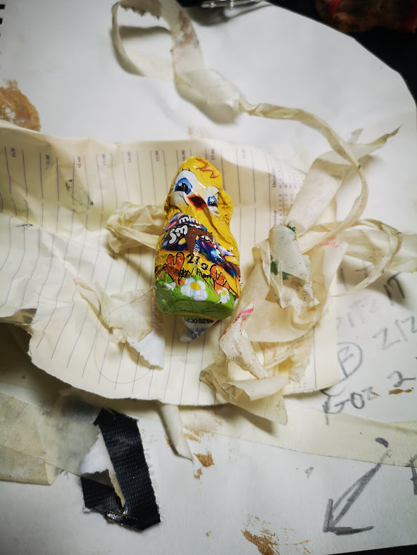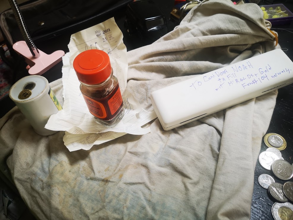 Spice jars, the world's filthiest T-Shirt (probably from his own collection) and...?