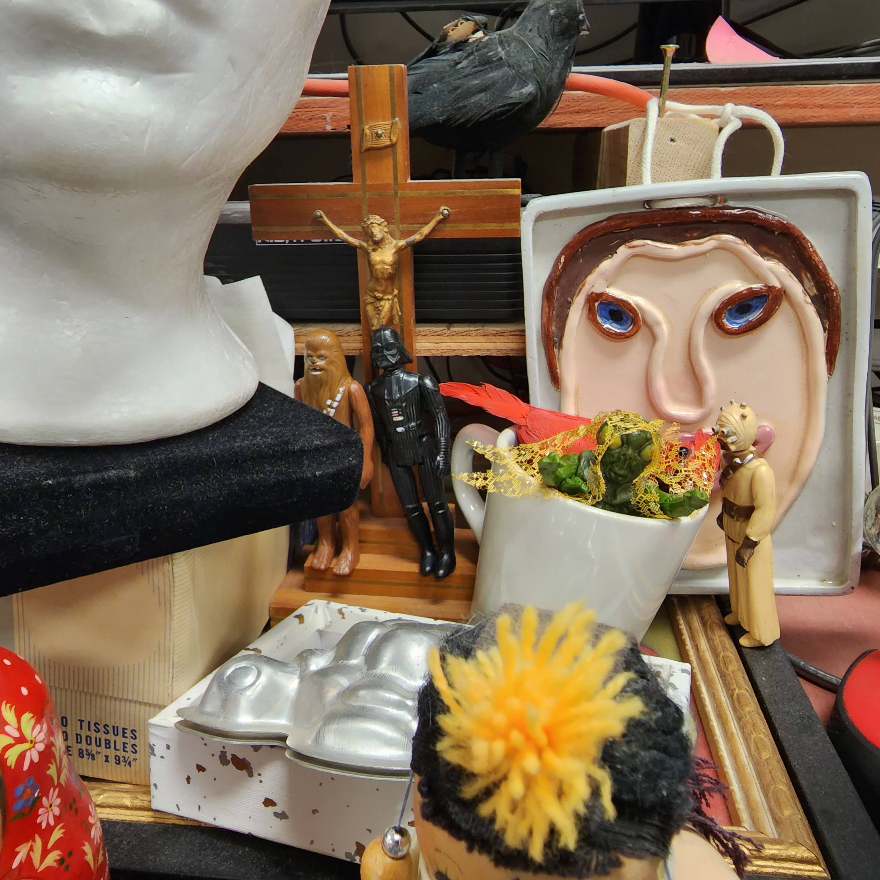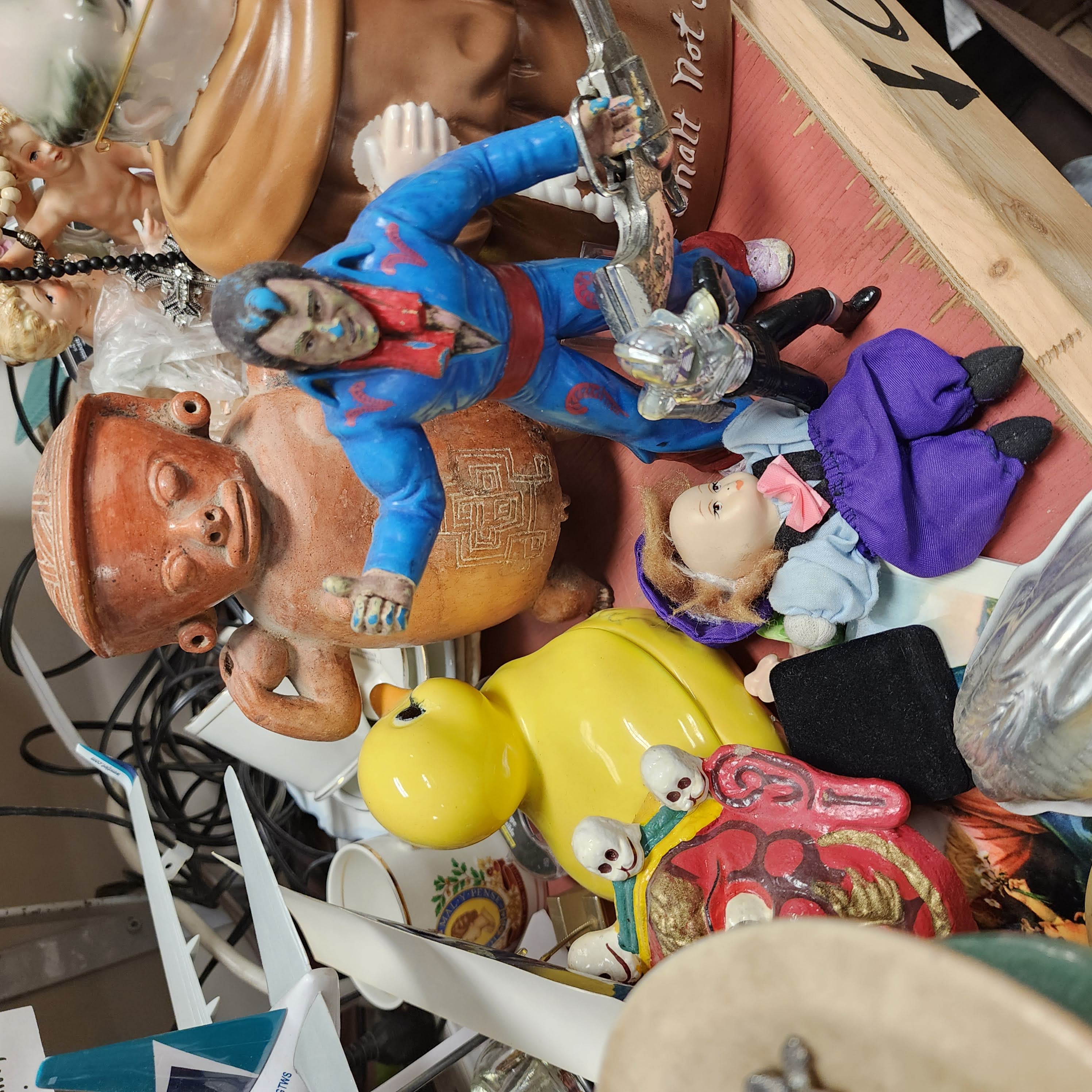 An obscenely detailed South American Pottery Figurine obscured by a hitchhiking Elvis...