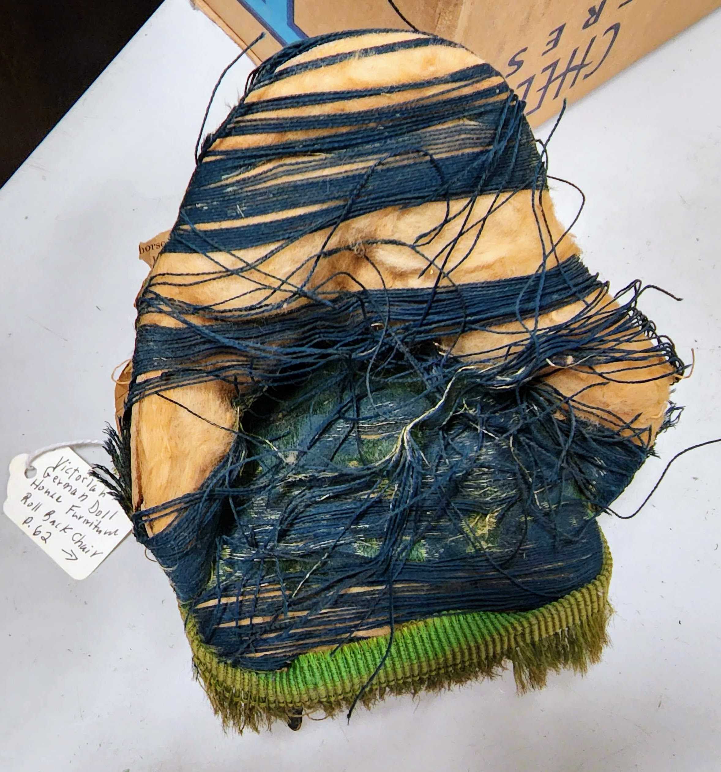 This in one of the "reserved" boxes of treasures. A 100+ year old dollhouse chair, why are they hanging on to it? Because it's old...