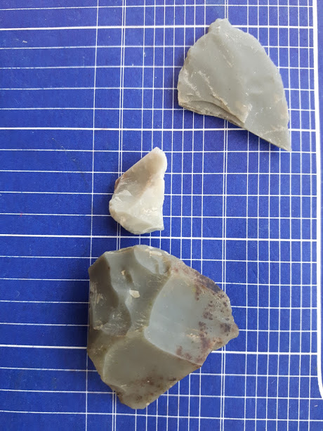 Another broken arrowhead, top, and a few flints/flakes on the bottom.