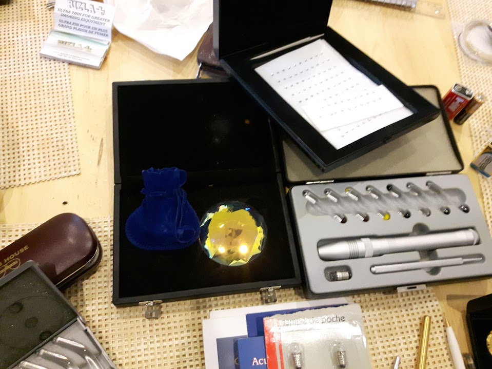 A crystal holography healing kit, "light therapy", with guide to acupuncture points, crystal holograms, wands, acupuncture electric stimulators, various other quack medical devices, total retail in excess of $1000 US, all mine for a mere $25 Canadian. After a bit of haggling, of course, but now, now I'm practically a Nelson Doctor. Dr. Rod.