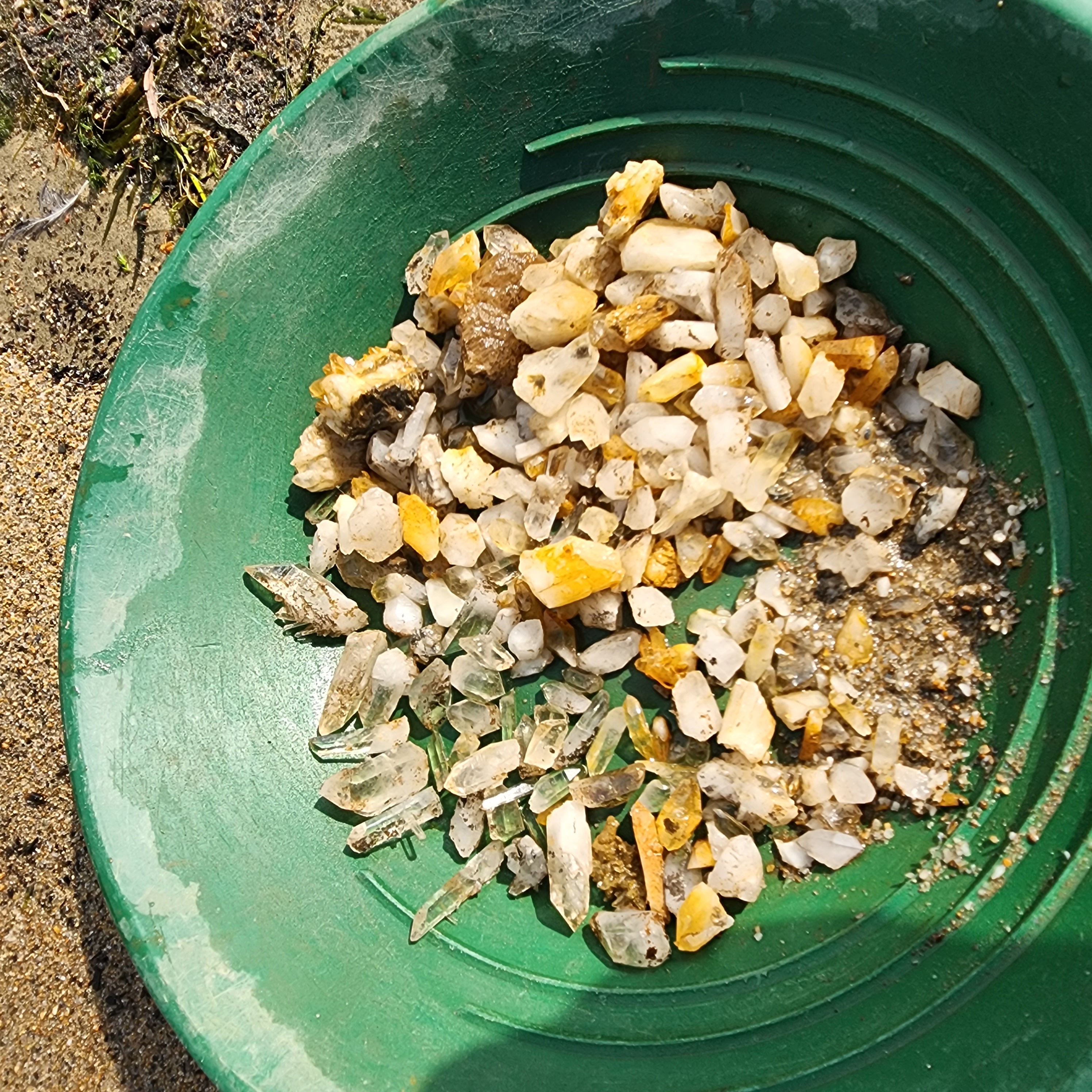 After coffee this morning (never enough coffee, after this I must find some more...) a trip down to the lake to wash up my crystal finds & see what I have...