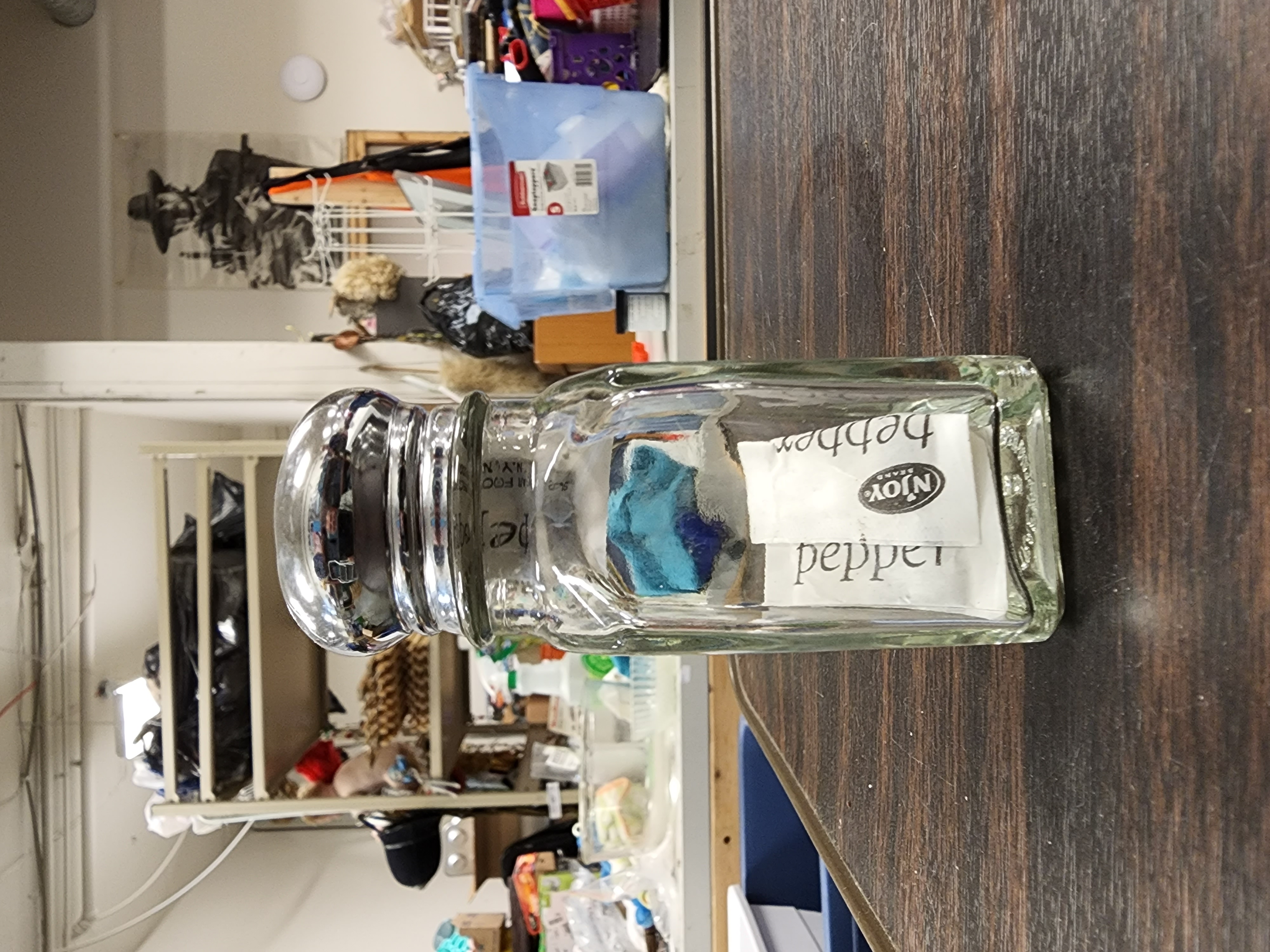 That is correct. A pepper shaker filled with little pepper packets, one has been opened and stuffed in the top of the shaker.