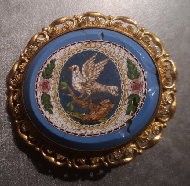 And, the one treasure I did find in Toronto, a fine Italian double sided micro-mosaic brooch. Circa (approx) 1860-1880. Note the detail - the entire brooch measures perhaps an inch and a half in width; double sided (a rarity), found in a bag for $3.99 at National Thrift: