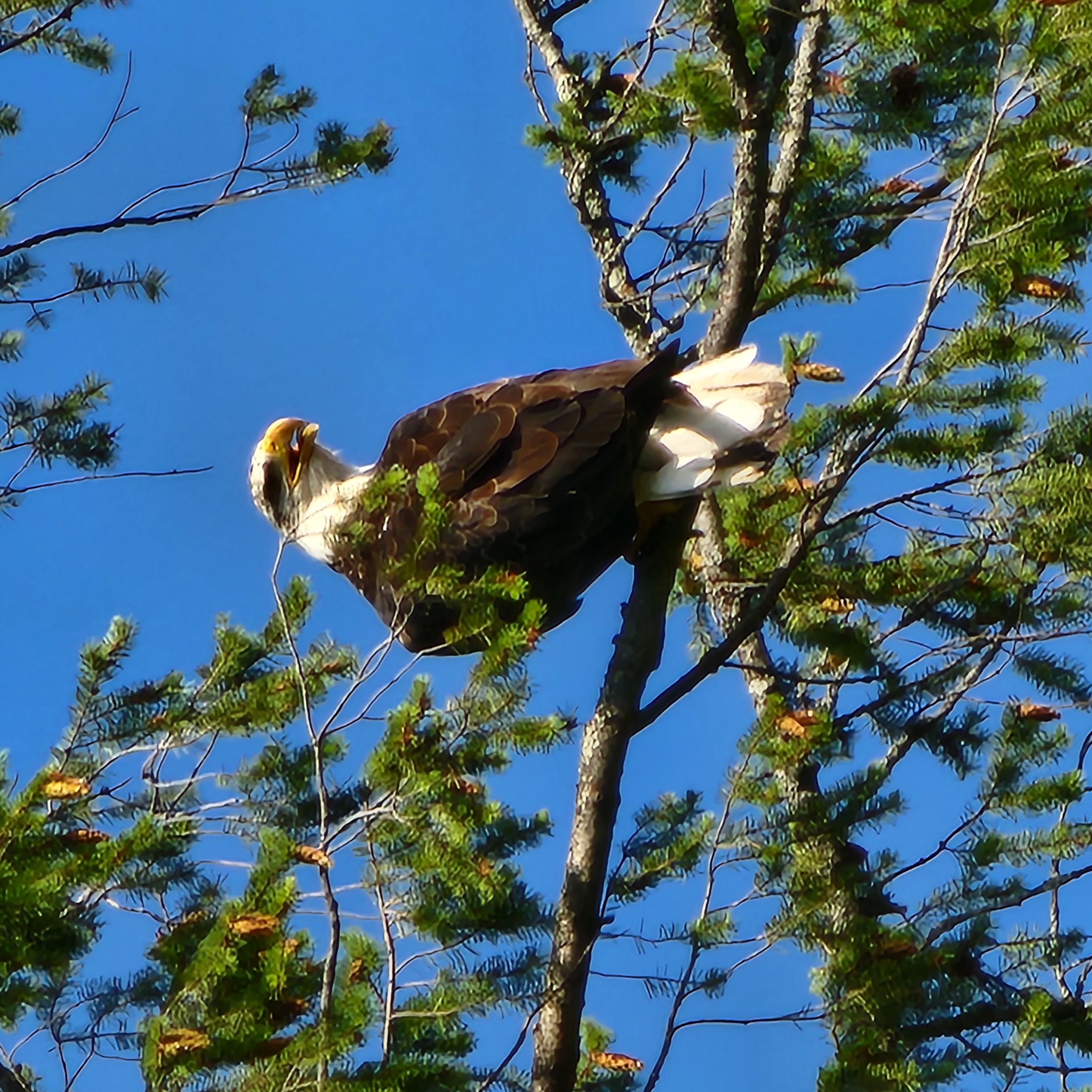 Done at around 2:00 PM, too early to find parking in town, so head on up to Balfour, where I spend a couple of hours looking for arrowheads. One find, a very old red jasper point, broken and reworked into a scraper, some other debitage, and a great view of the Balfour Eagle, now moved on by the lost of his/her nest...
