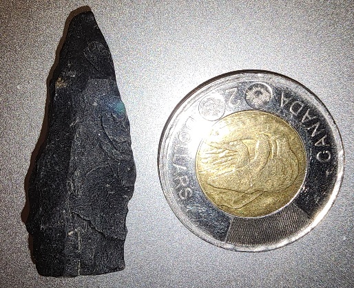 And a walk along the lake at Balfour, looking for arrowheads. An hour, a few bits of debitage, then this: