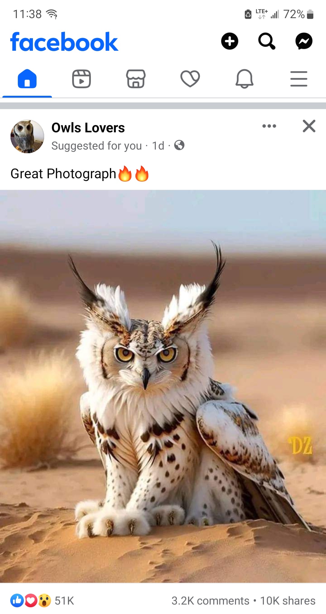Captioned "Great Photograph", which it would be, if there were some subspecies of 6 legged owl in the Sahara Desert.